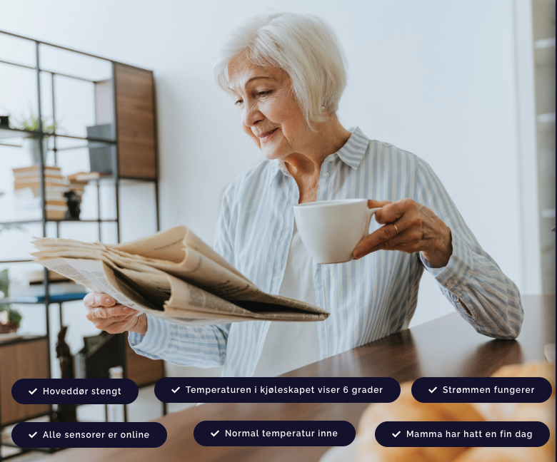 Et diskret system som registrerer adferd og varsler når noe skulle skje. Og hjelper deg å vite at alt er som det skal hjemme hos Mamma eller Pappa.
